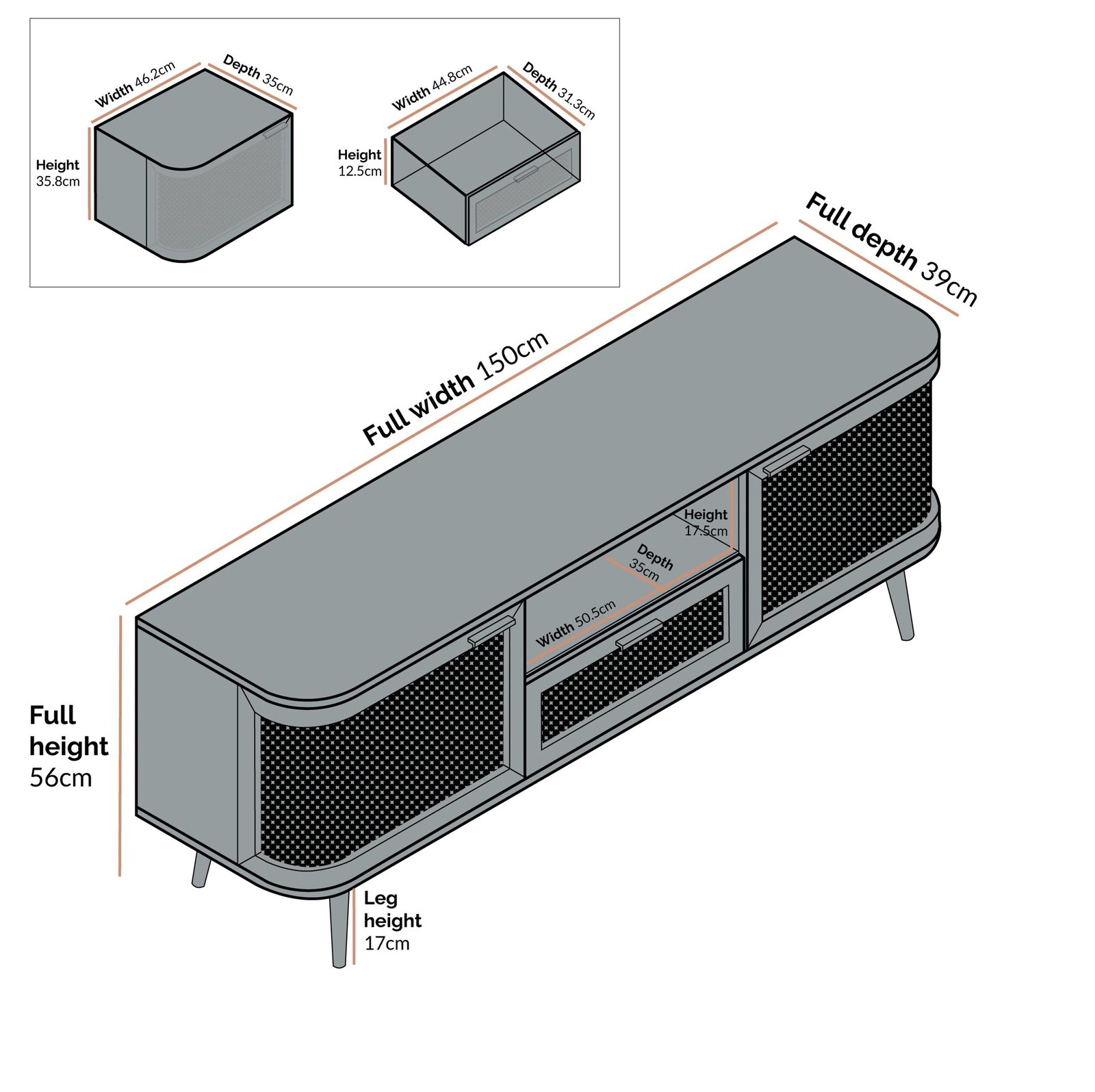 Dewpoint TV Cabinet with Rattan