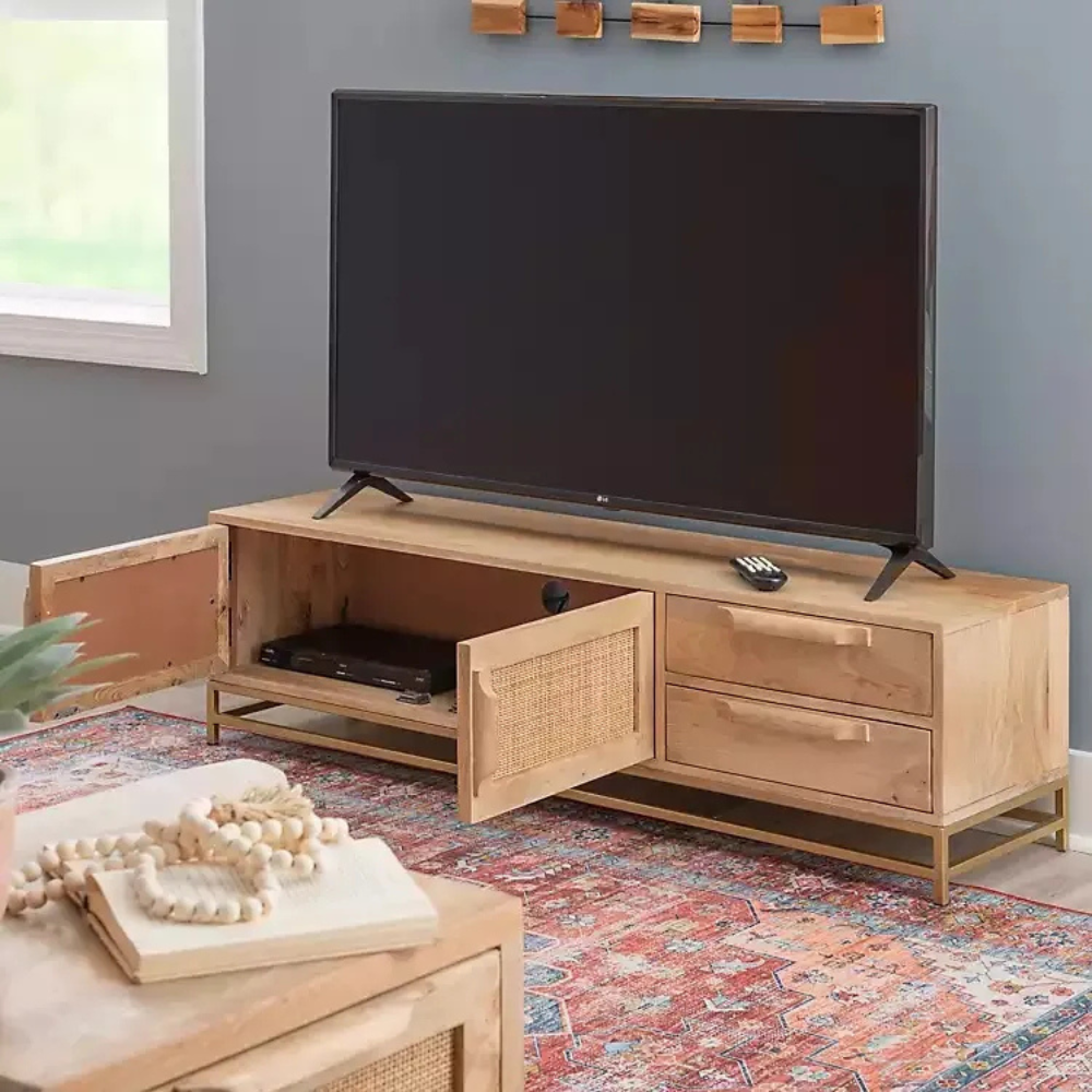 Natural Solid Wood & Rattan Harlington TV Cabinet