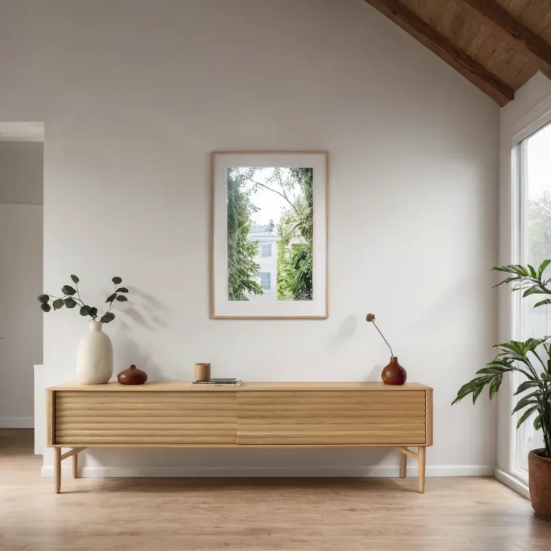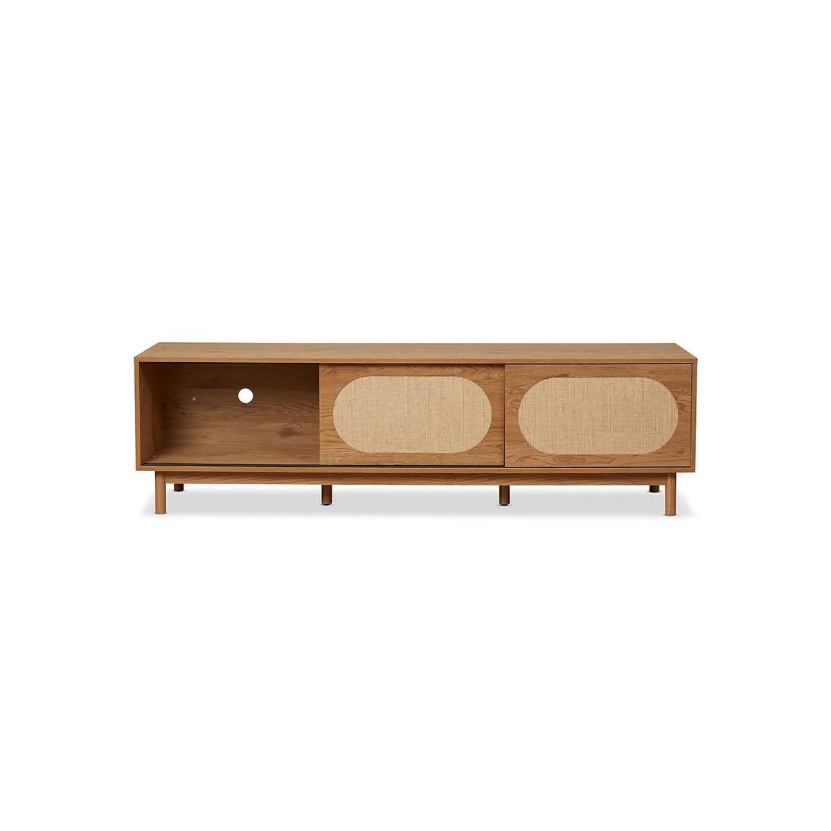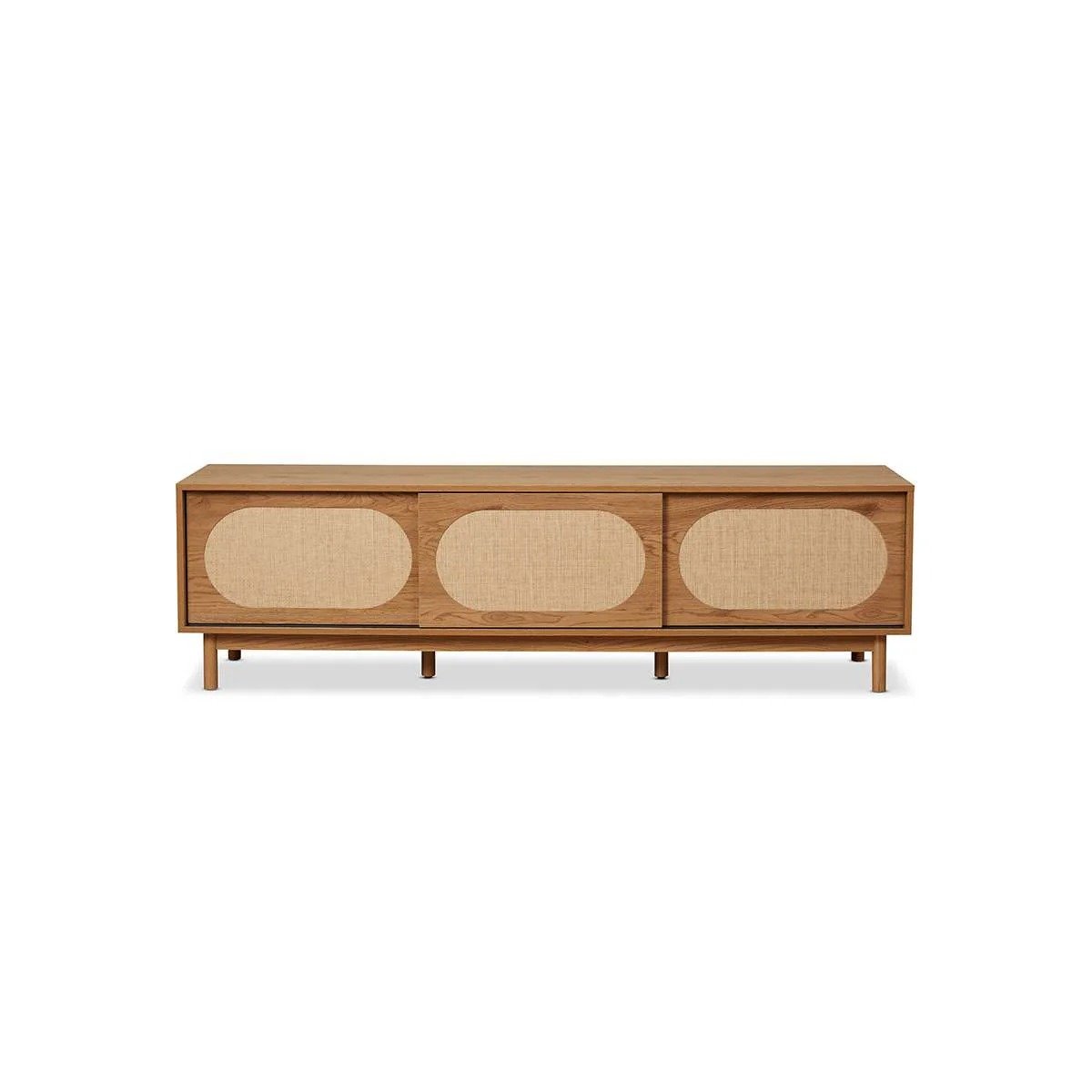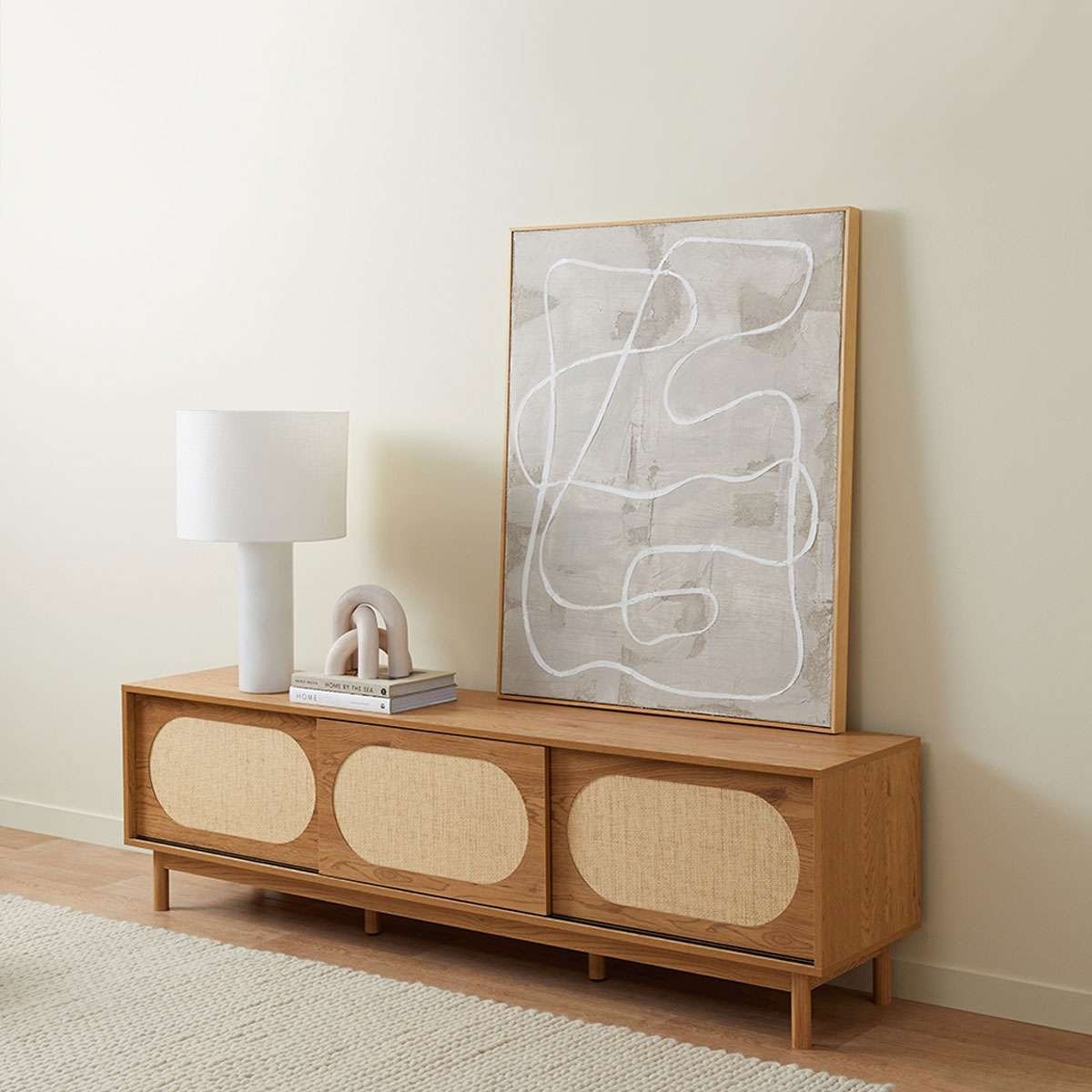 A great way to add a warm, organic style to your living spaces, looks great under a wall-mounted TV and is the perfect place to display decor. It has three cupboards with slidable doors, making it easy to store all your entertainment essentials and keep your lounge room tidy and organized.