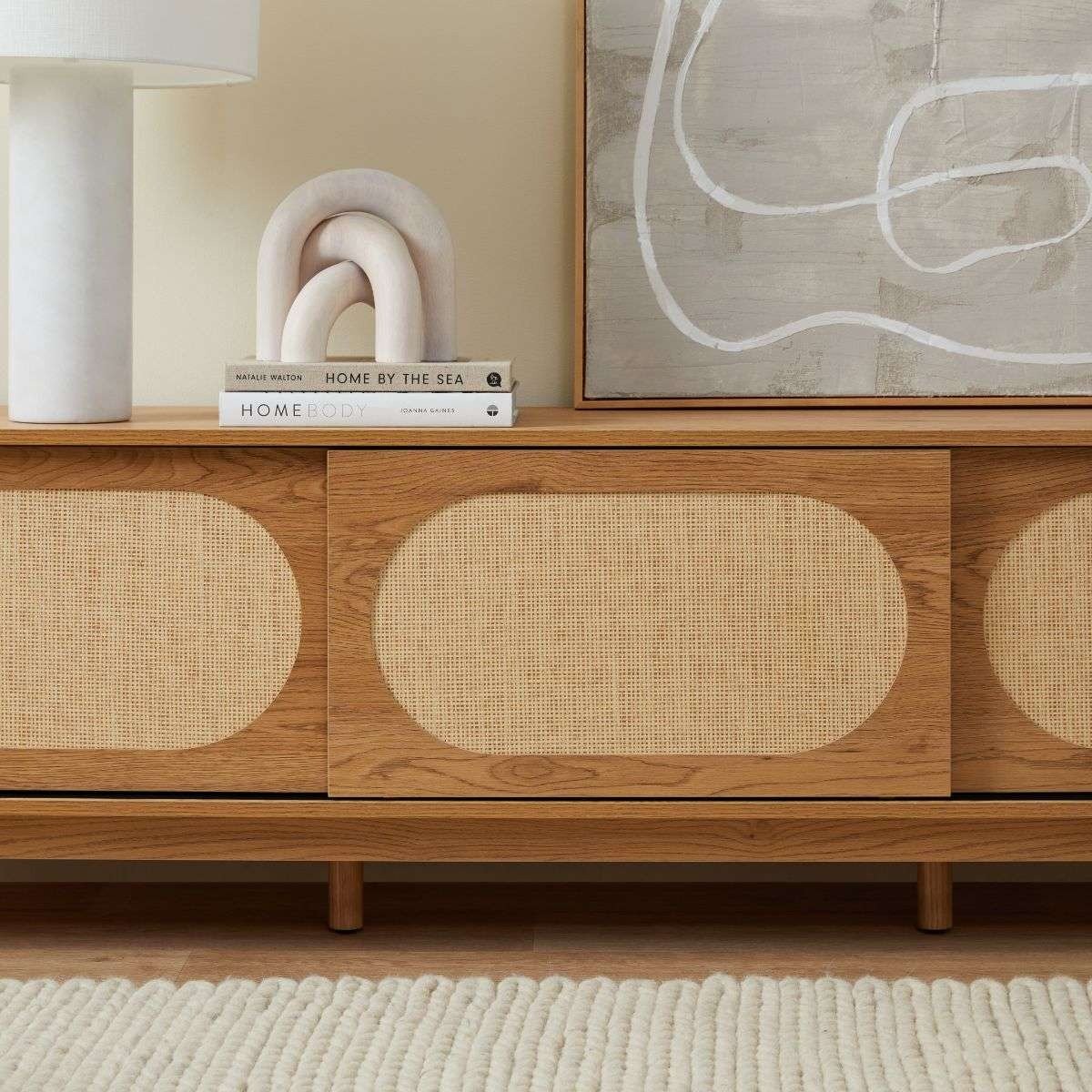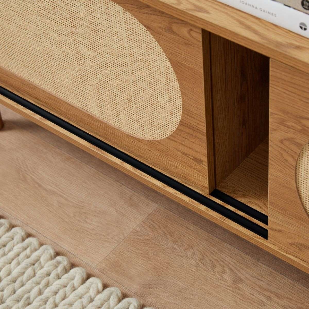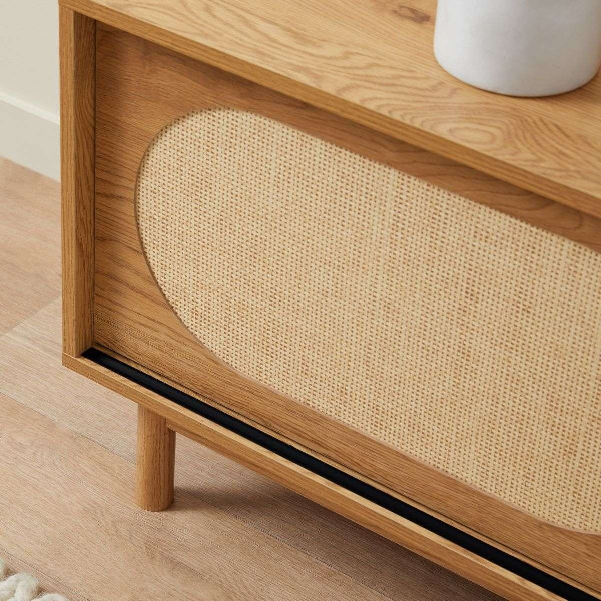 Large adds a natural rattan style to your living room. An on-trend statement piece that can’t be ignored, it features a solid wood grain finish and arched rattan panels on the sliding doors.