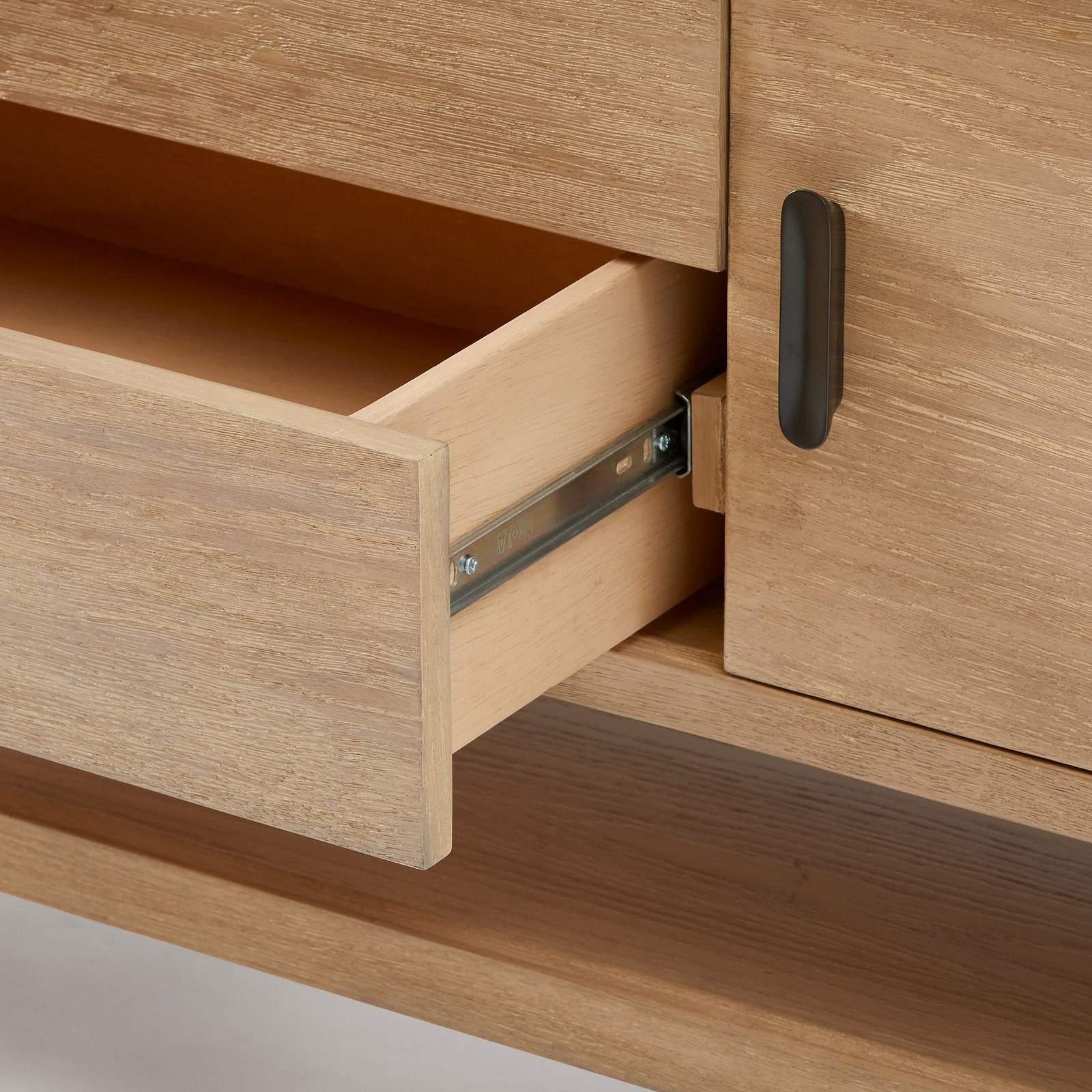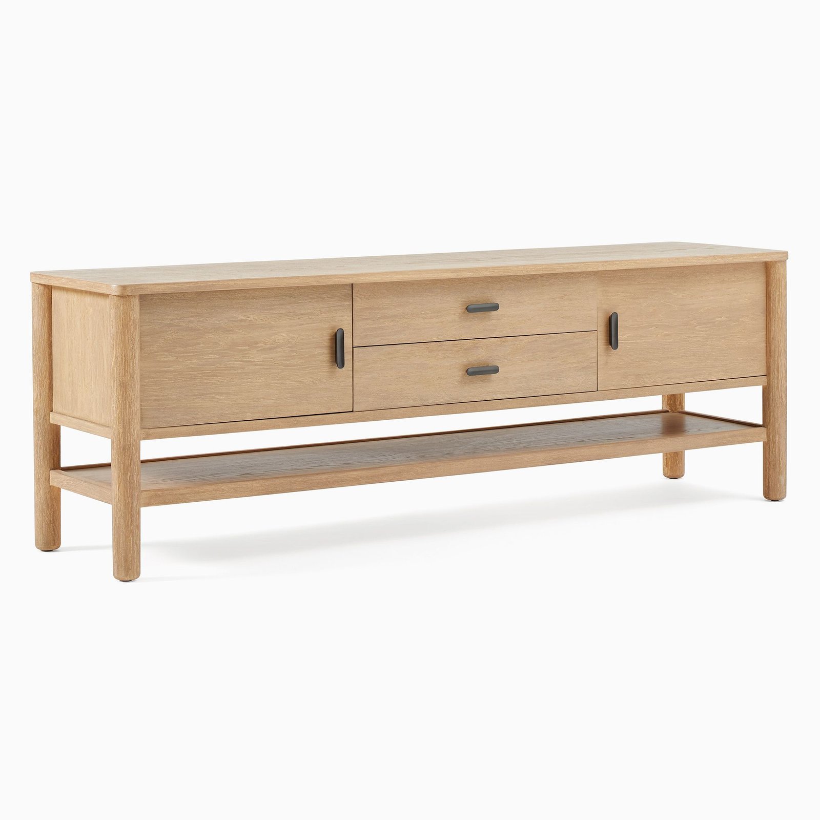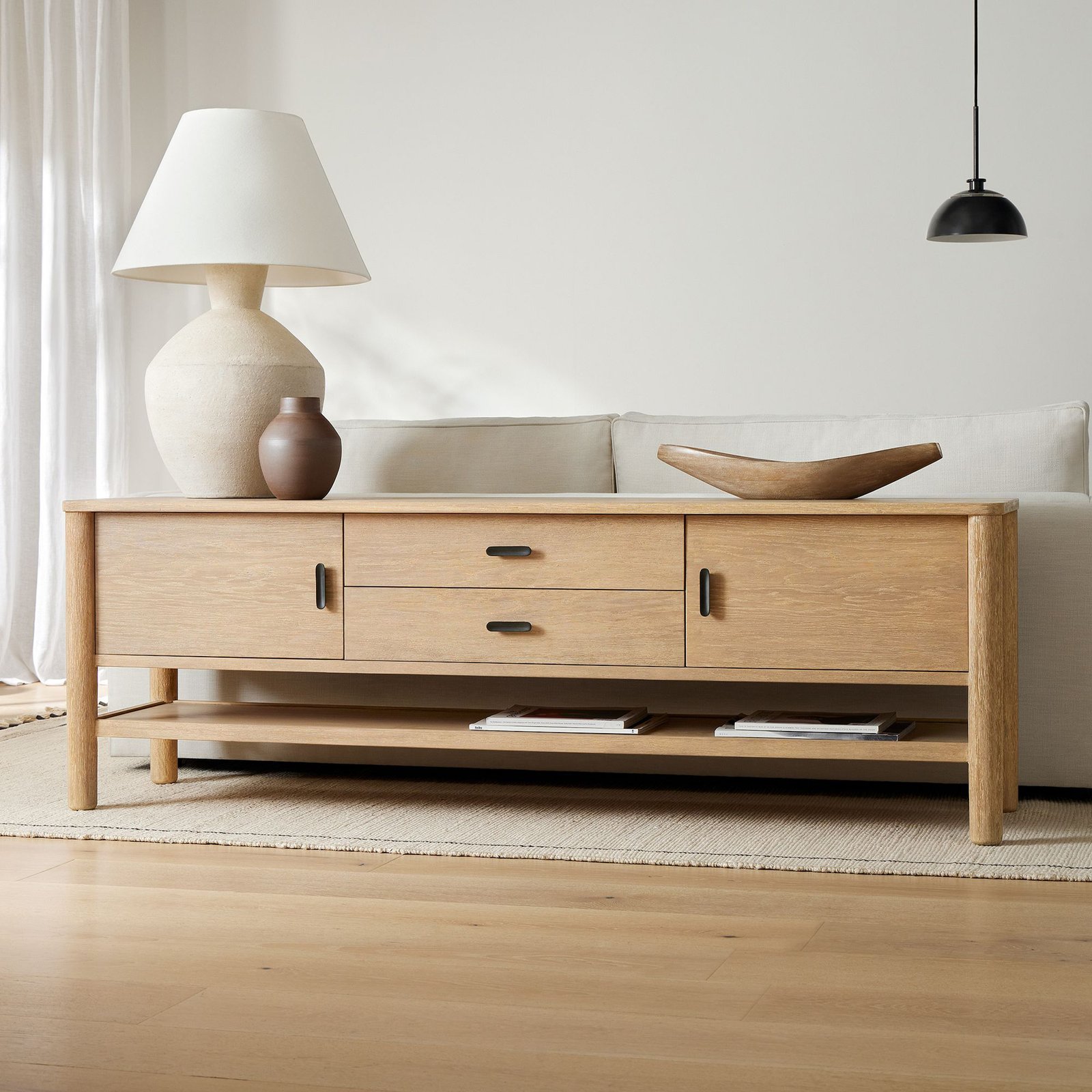 A mix of open and closed storage lets you choose when to display or hide away. Covered in a water-based Dune finish. All wood is kiln-dried for added durability.