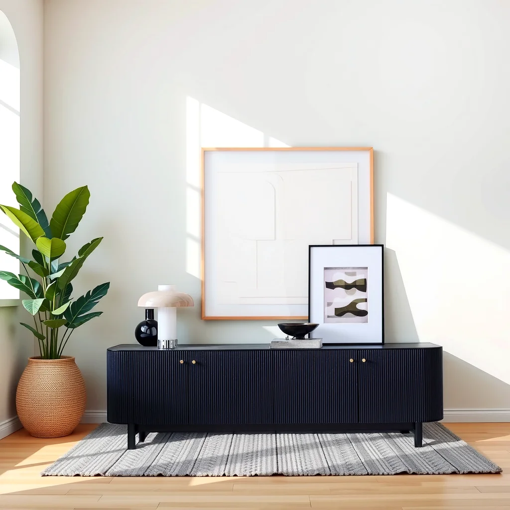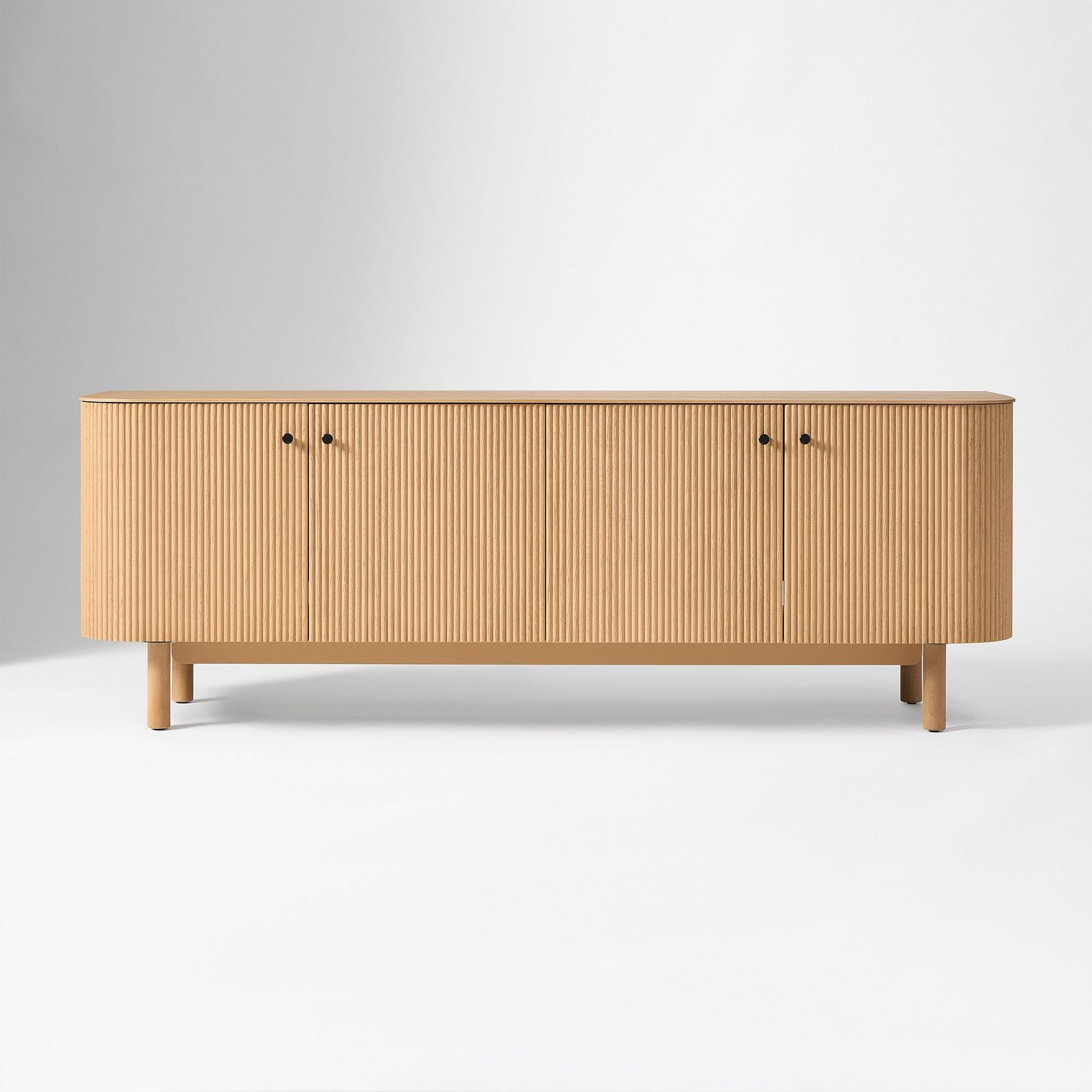 Fluted fronts are a subtle way to give this piece texture, depth, and contrast. Its large scale makes it the perfect anchor piece for your living room.