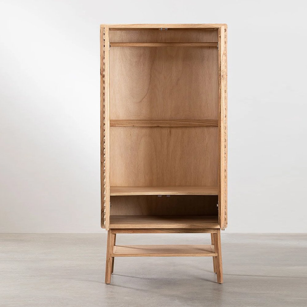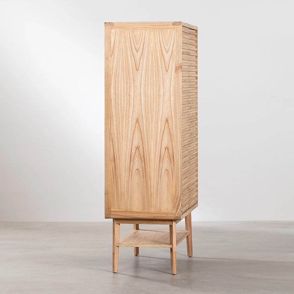The wooden wardrobe Everset is the furniture you need to change the look of your bedroom. This piece is made of solid mango wood. This material guarantees the quality and durability of the furniture. Vintage in style, it stands out for the original wavy design of its doors. It has an extra storage space at the bottom, which you can complete with decorative boxes to store your accessories. Everset is stylish and sophisticated, so you can place it in rooms such as the hall to deposit your outerwear. Complete your decoration with the rest of the products from the Deleyna collection available on our website