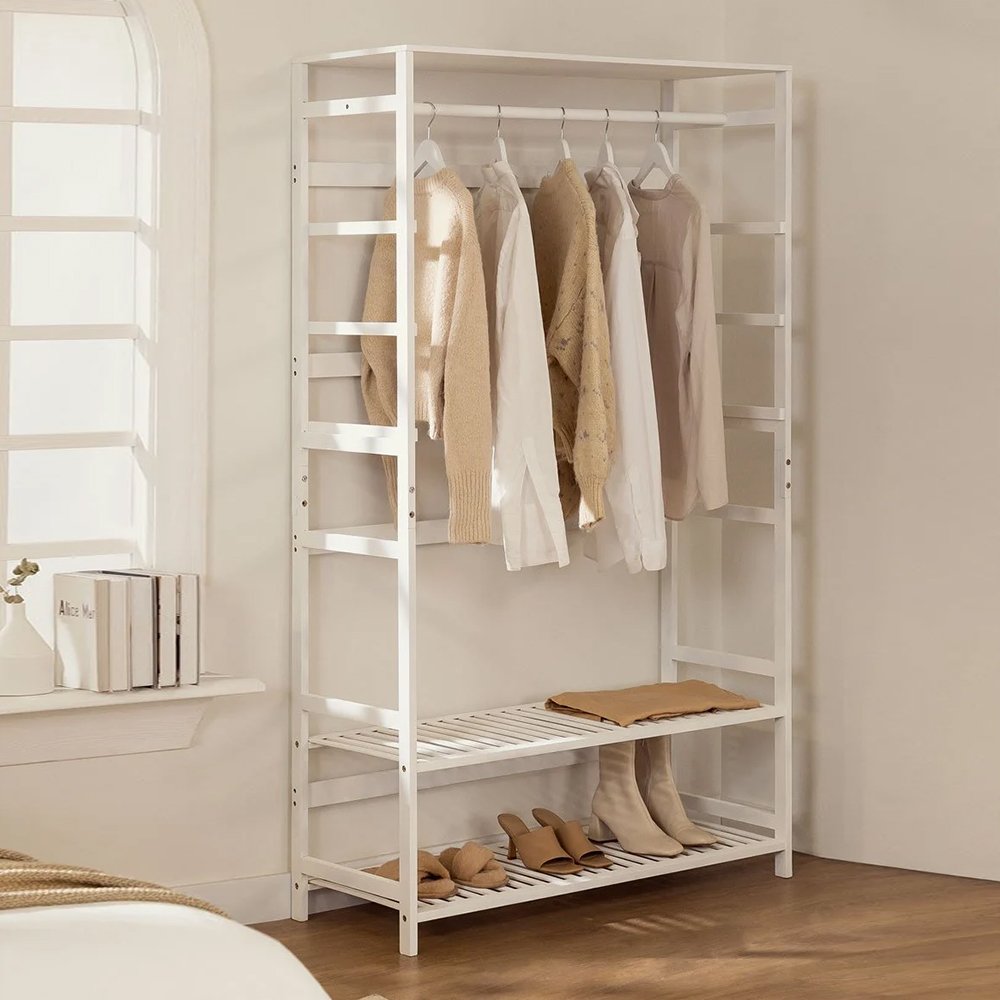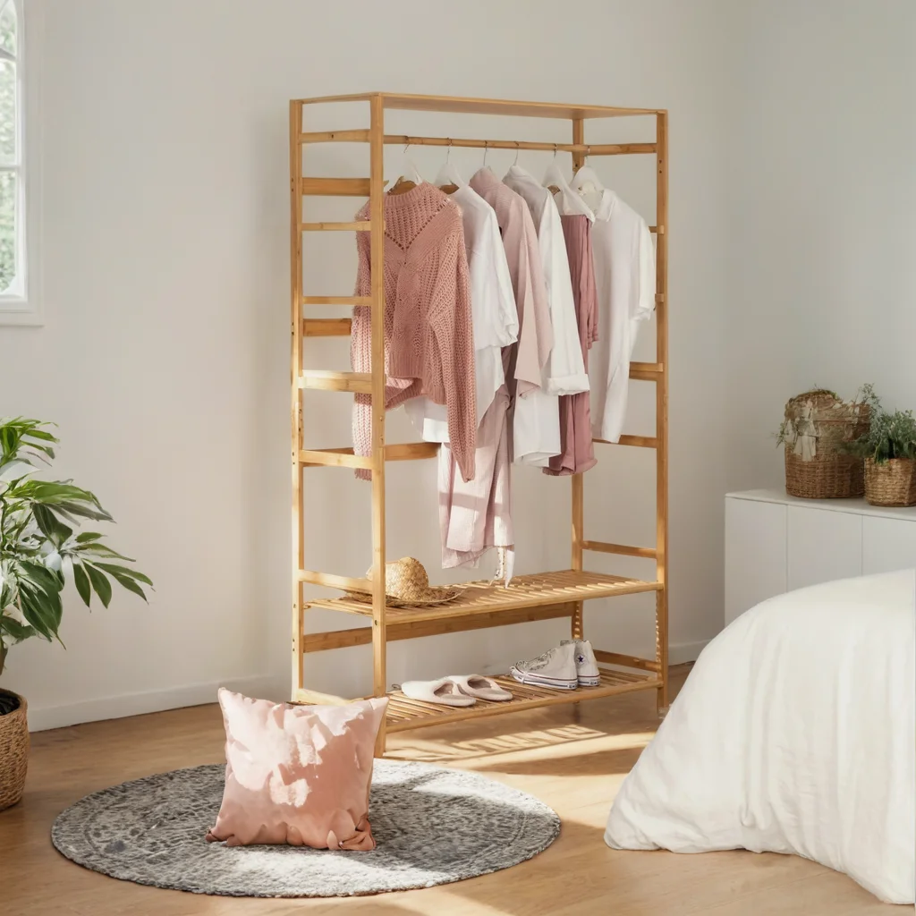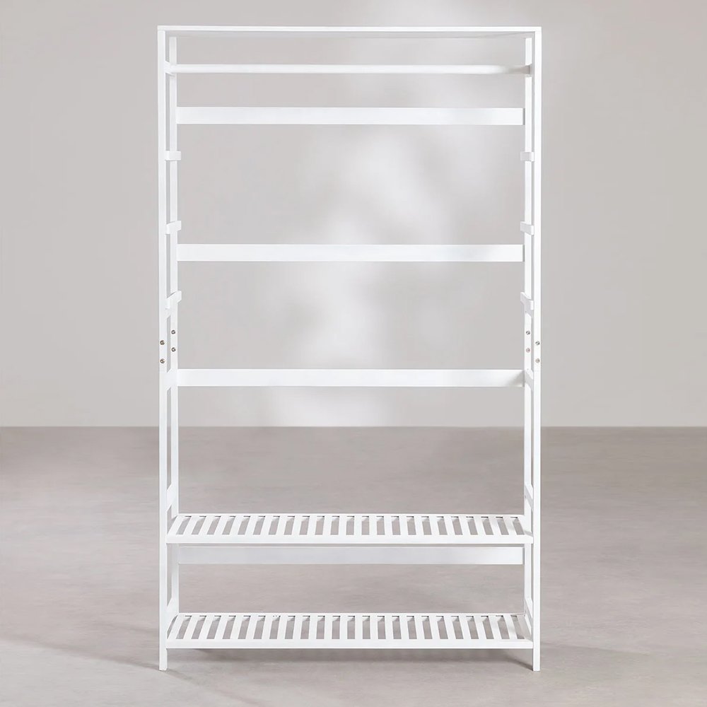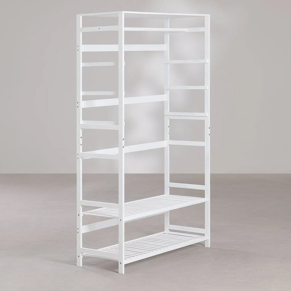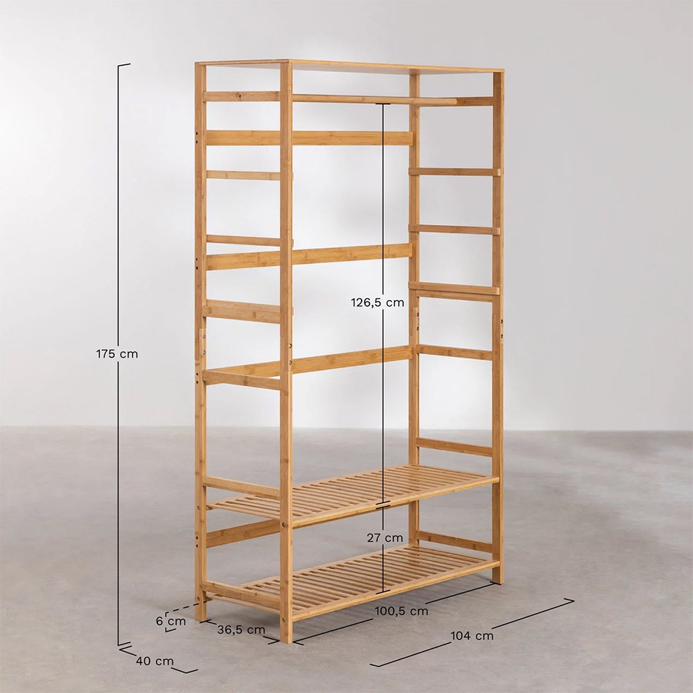 If what your house needs is extra storage for clothes and accessories, the Kingsridge open wardrobe is perfect for you. It is made of solid mango wood, which gives strength and naturalness to its design. It has a bar to hang all kinds of garments on hangers, and 2 shelves to store folded clothes, shoes or decorative boxes to put your belongings. It has perfect sidebars for pants or scarves. Kingsridge is ideal for environments of any decorative style thanks to its timeless, simple, and natural design.