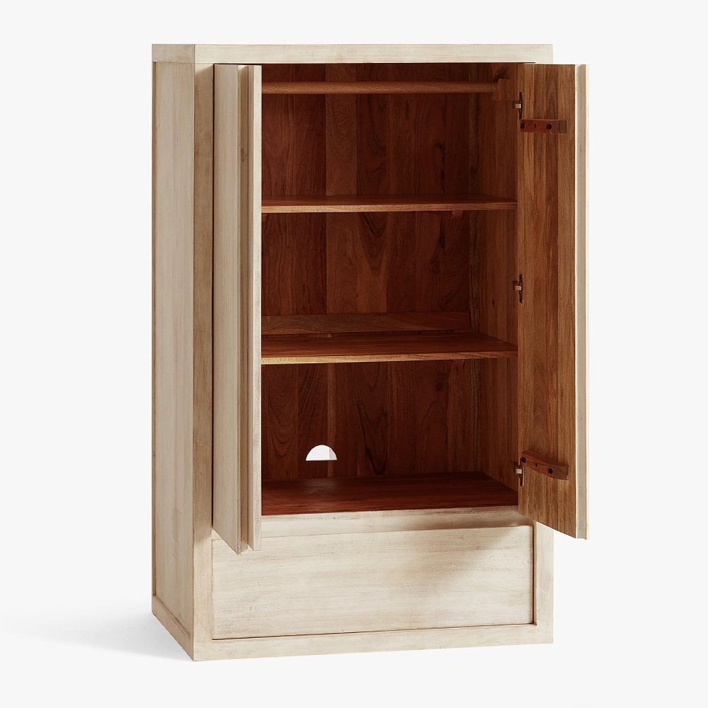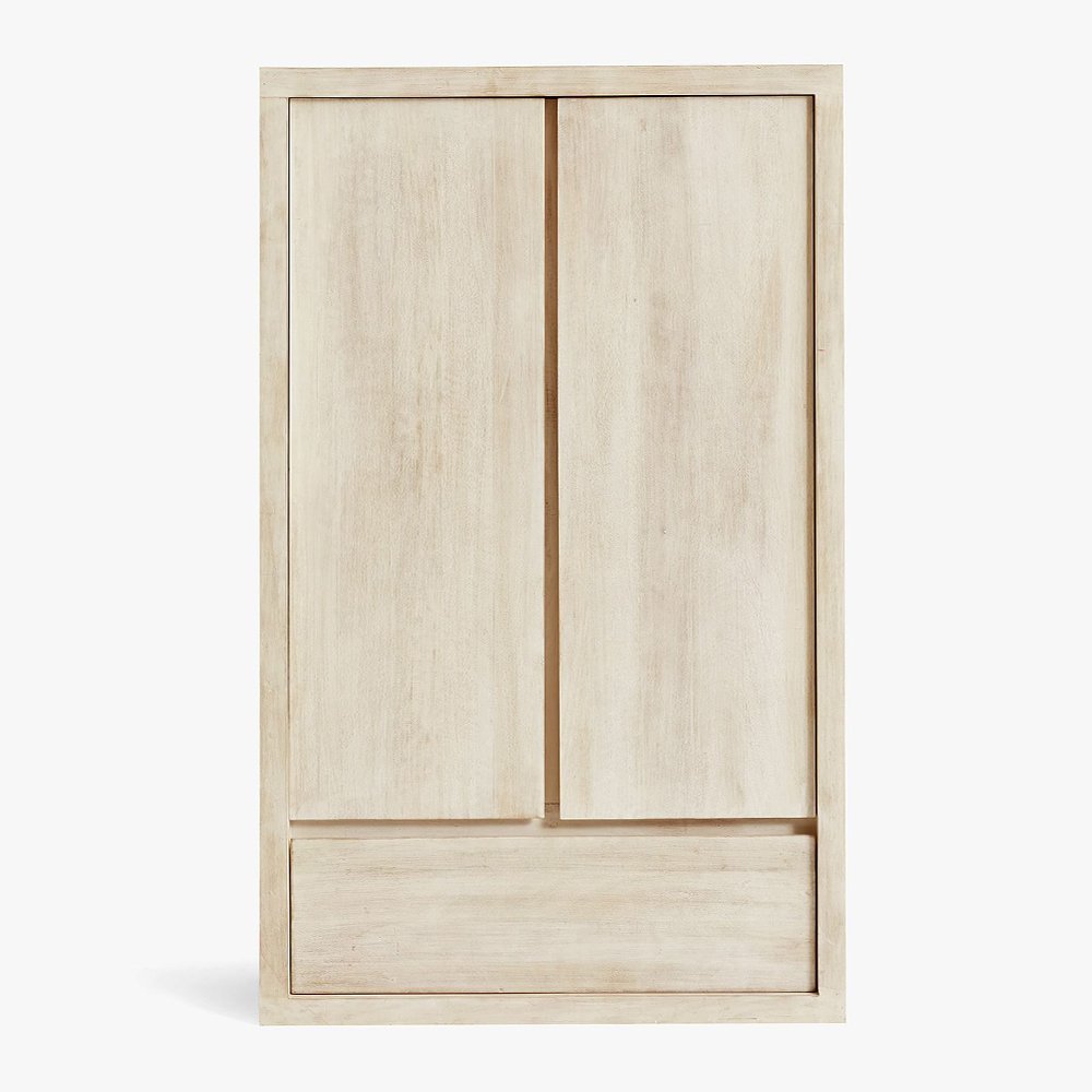 Features 2 adjustable shelves, 1 clothes rod, and a spacious drawer for storage.